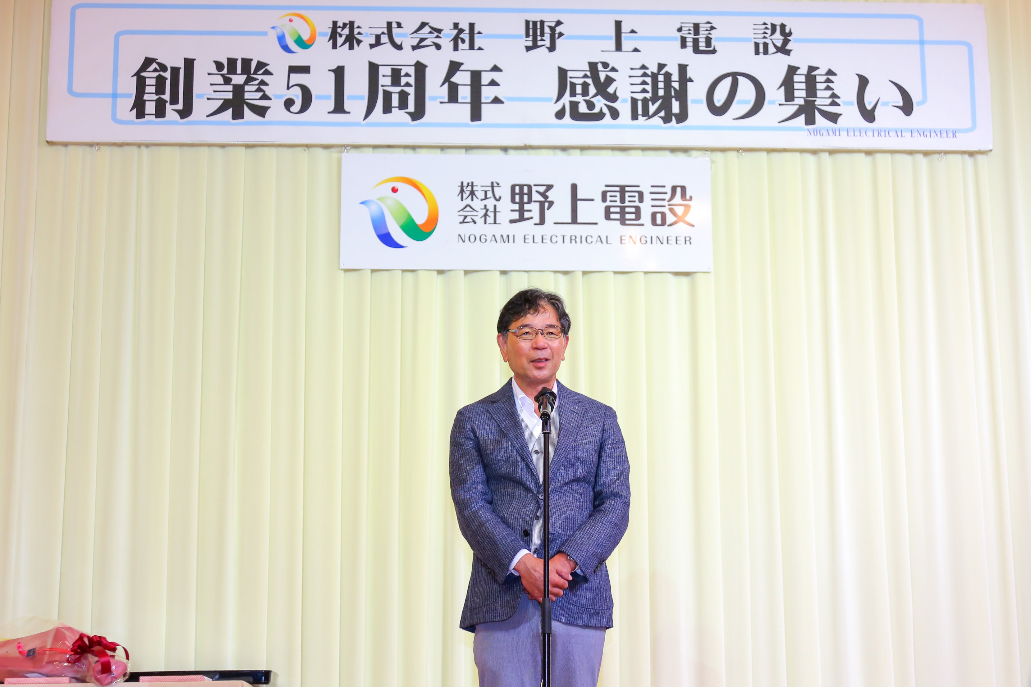 この51周年を機に役員社員一丸となって益々業務に邁進する覚悟でございます。ご来臨の皆様にはどうかこれまで同様のご指導、ご鞭撻を賜りますようお願い申し上げますとともに、ご健勝とご多幸を心よりお祈り申し上げます。